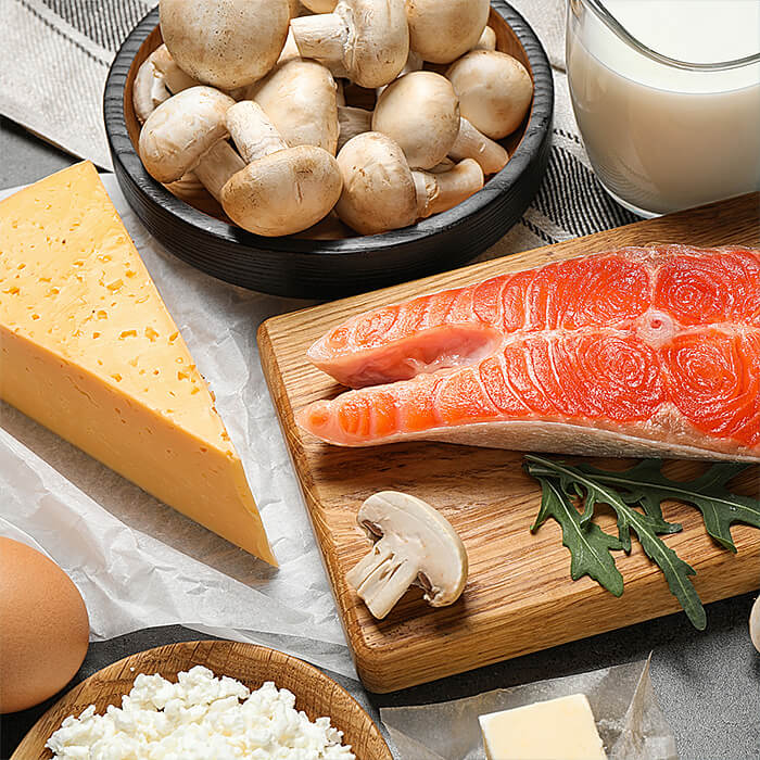 Los alimentos ricos en vitamina D son principalmente los pescados azules, los lácteos no desgrasados, los huevos y, en menor proporción, algunos hongos.
